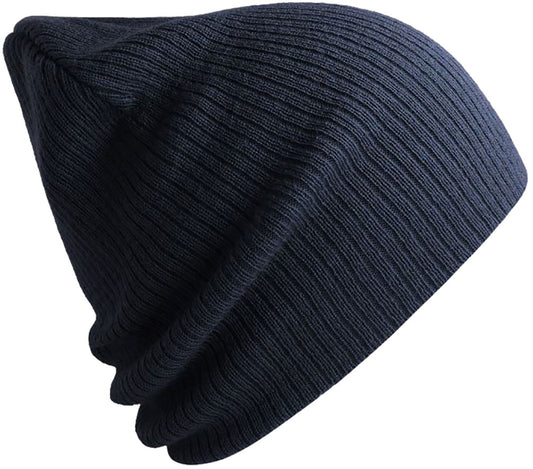 ALS 0122 ― Längere Beanie Strickmütze, recyceltes Polyester - Navy Blau