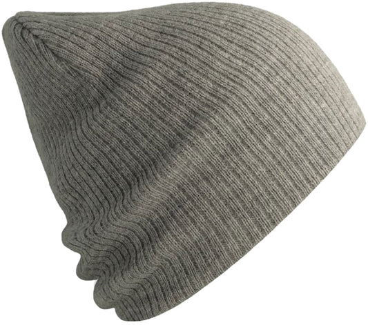 ALS 0122 ― Längere Beanie Strickmütze, teilw. recyceltes Polyester - Light Grau Melange