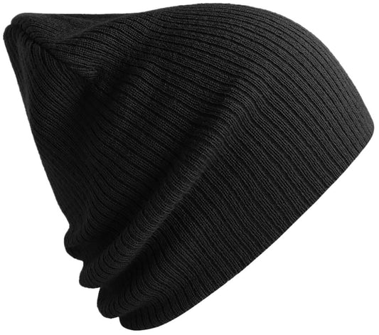 ALS 0122 ― Längere Beanie Strickmütze, recyceltes Polyester - Schwarz