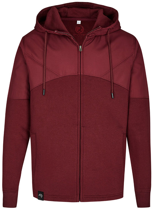 MMT 0810 ― Hybrid Material-Mix Sweatjacke mit abnehmbarer Kapuze - Burgundy Rot