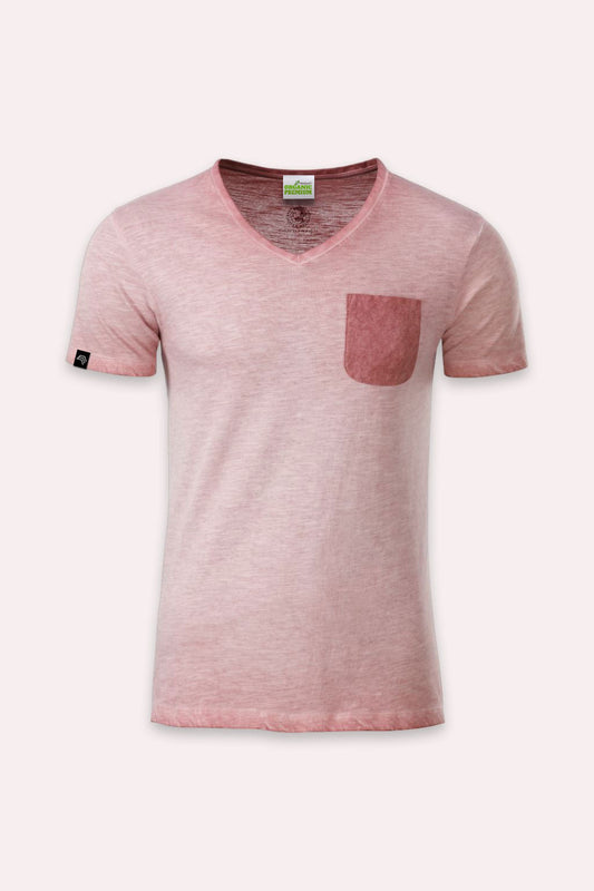 Auslaufartikel ― JAN 8016 ― Herren Bio-Baumwolle V-Neck Flammgarn T-Shirt - Soft Pink