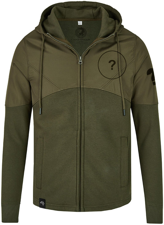 MMT 0810 ― Hybrid Material-Mix Sweatjacke mit abnehmbarer Kapuze - Olive Grün