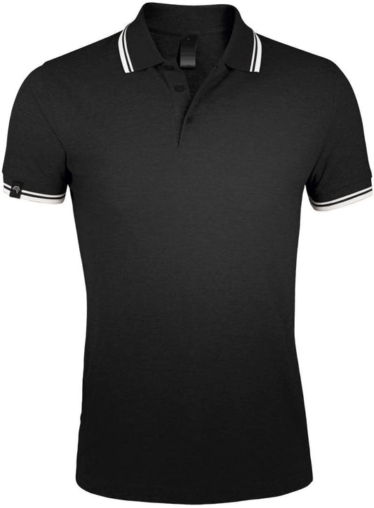 SLS 0577 ― Kontraststreifen Polo Shirt - Schwarz / Weiß