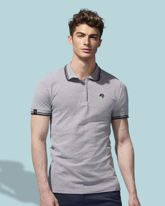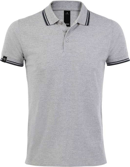 SLS 0577 ― Kontraststreifen Polo Shirt - Melange Grau / Navy Blau