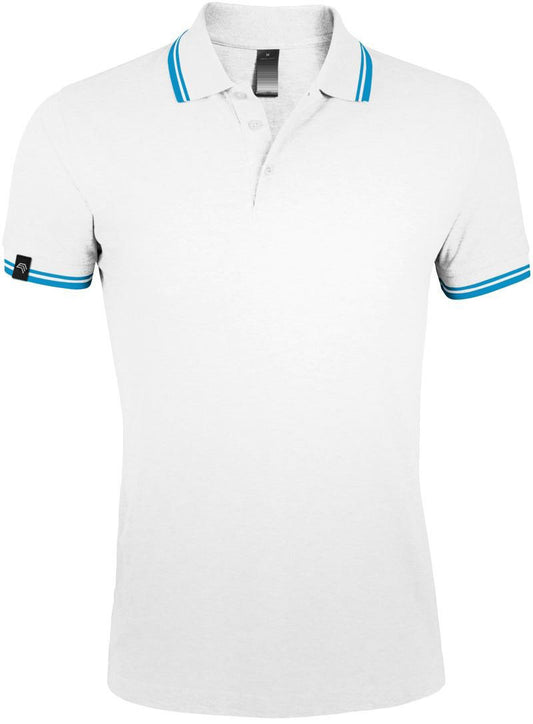 SLS 0577 ― Kontraststreifen Polo Shirt - Weiß / Aqua Blau