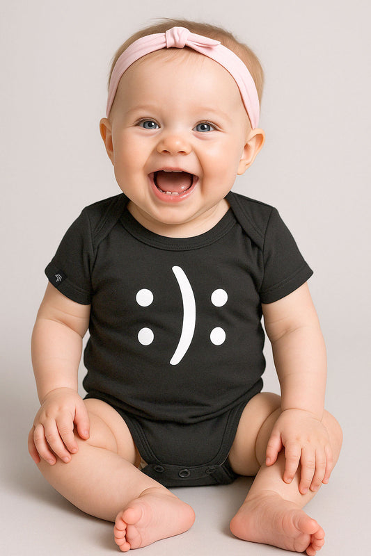Happy? Or Sad? ― Organic Baby Body Strampler aus Bio-Baumwolle - Schwarz
