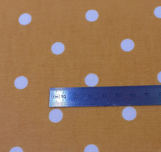 Beschichtete Baumwolle - Wachstuch aus England, PVC-beschichtet, gelb mit weißen Punkten, 130 cm Breite