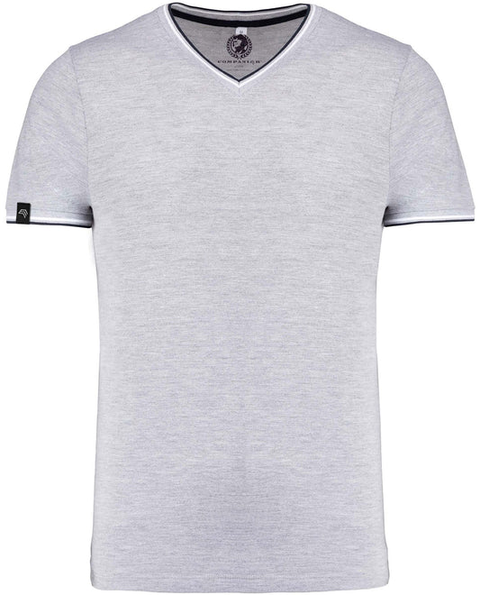 KRB K374 ― Bi-color Piqué-Trikot V-Neck T-Shirt - Melange Grau / Blau / Weiß