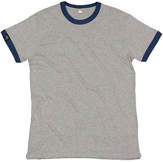 ― % ― MTS M175/ ― Peach Finish Retro Ringer Bio-Baumwolle T-Shirt - Gray Melange / Blau [M]