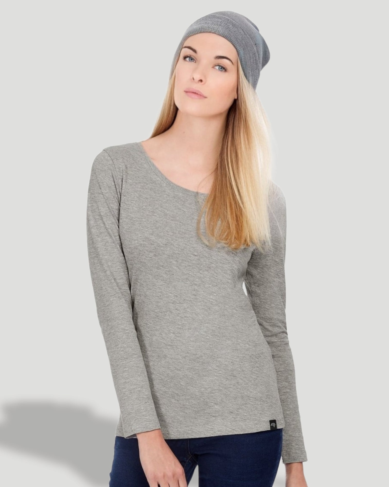 BAC TW071 ― Damen Bio-Baumwolle Langarm T-Shirt - Melange Heather Grau