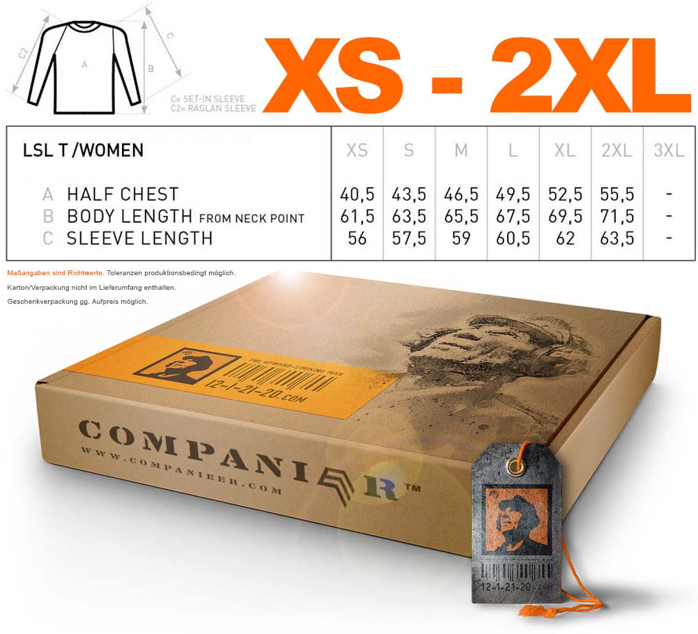 6 more colors available » Modell "BAC TW071" ― Ladies' Organic Cotton Long Sleeve T-Shirt. Material: 140 g/m² • 100% cotton (organic), combed and ring-spun • Medium Fit (size table at pictures, check your measurements please) • Soft jersey with a luxurious handfeel • Thin ribbed crew neck • Shoulder-to-shoulder necktape • Side seams // BACTW071 Companier Langarm Longsleeve langärmlig langärmeliges Langarmshirt Long Sleeve langärmelig