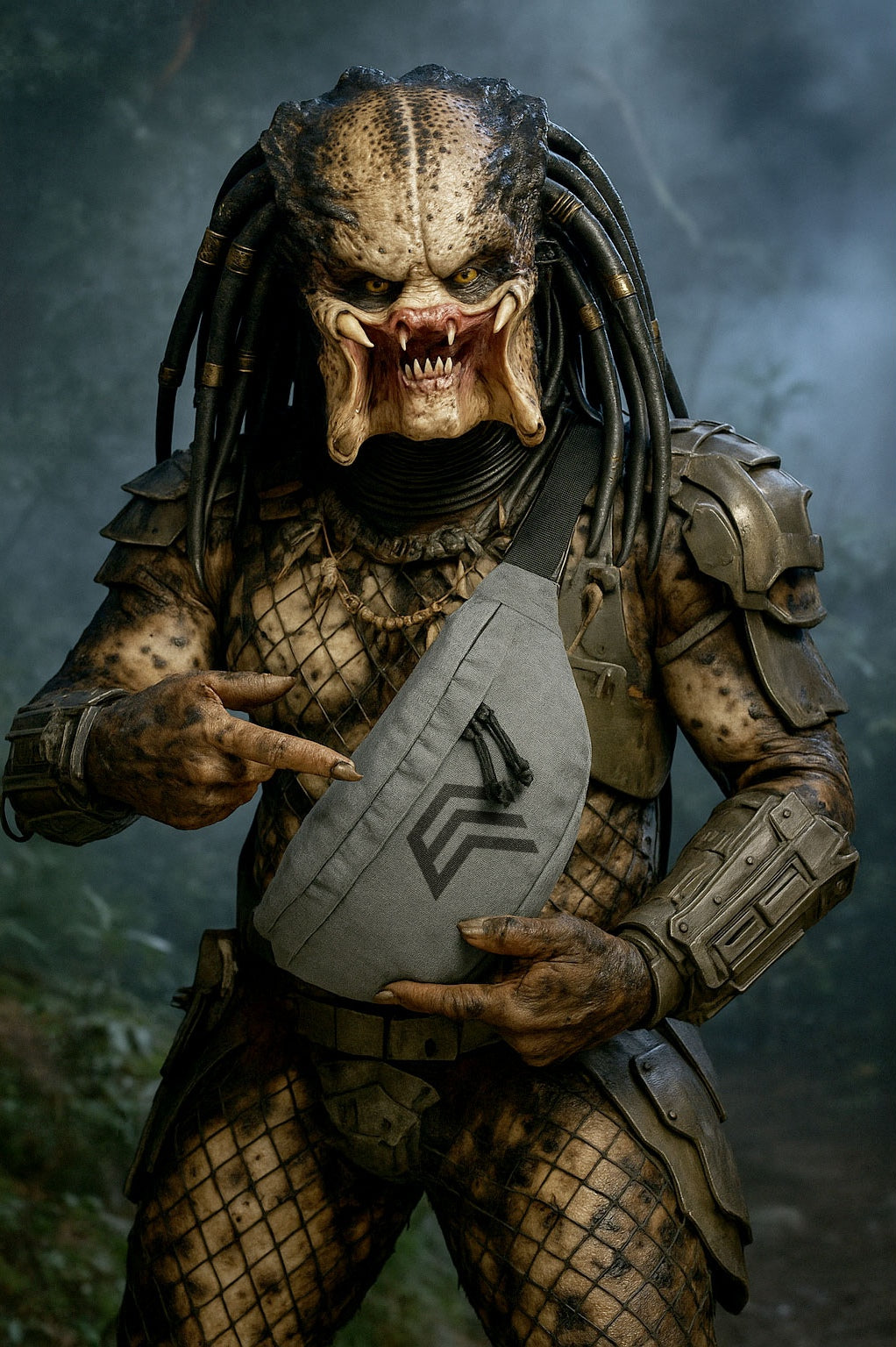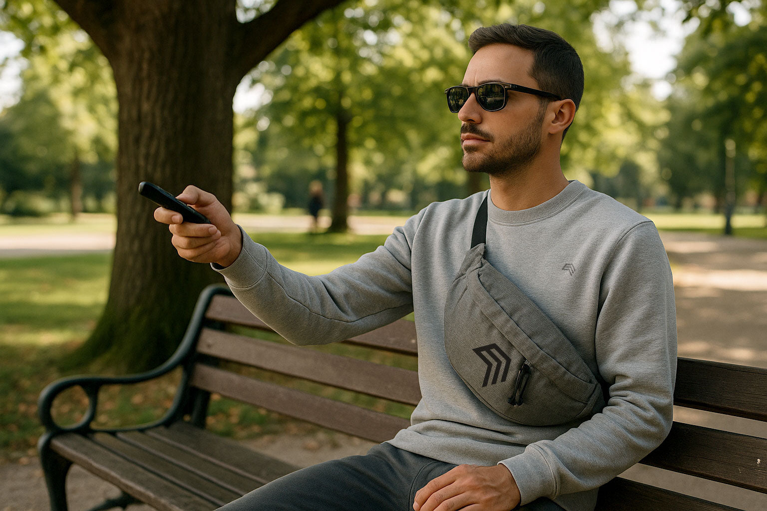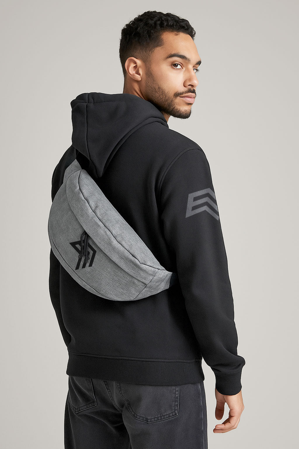 BGS 0143 ― Oversized Cross Body Shoulder Bag - Grey Melange / Schwarz