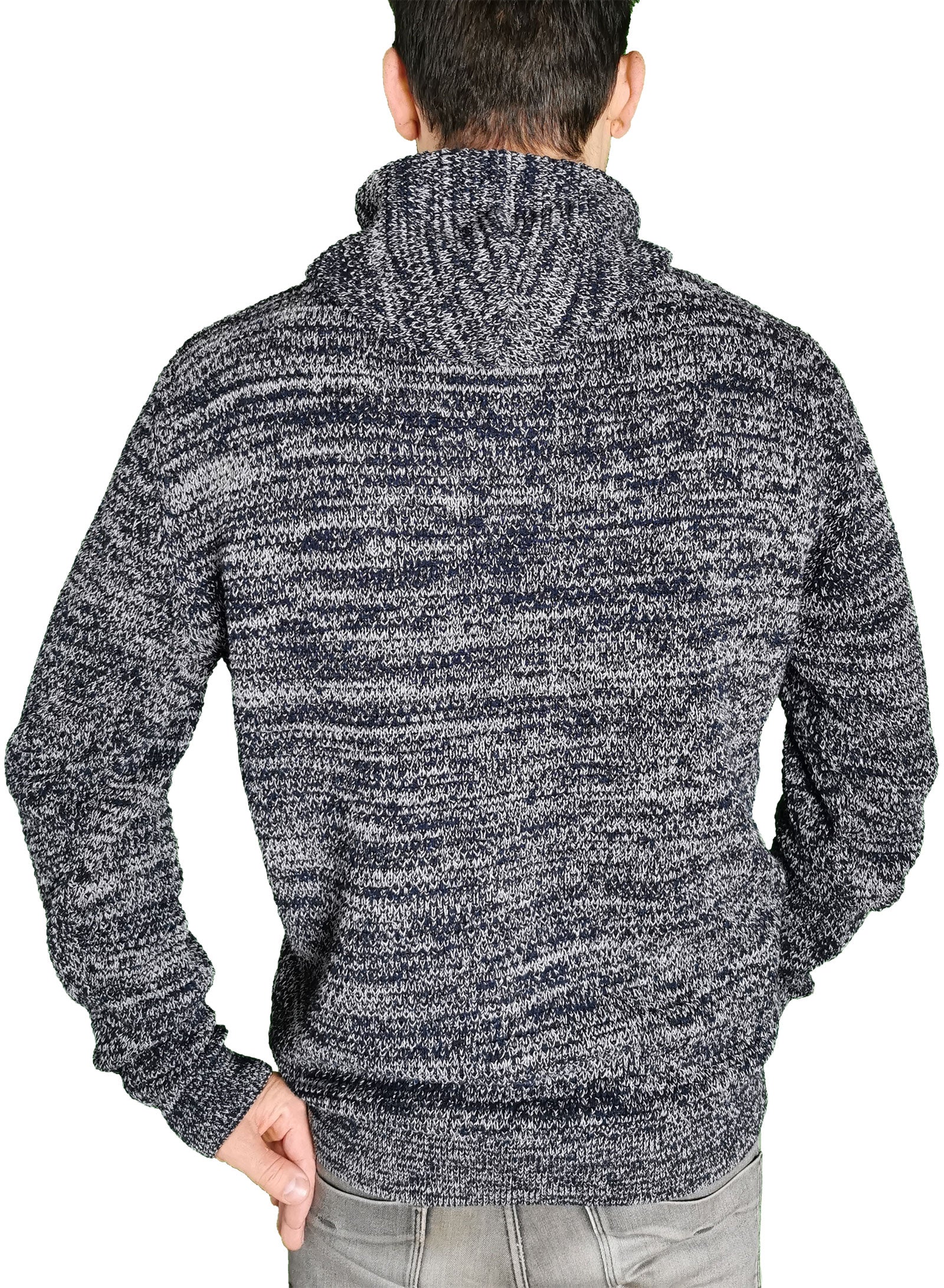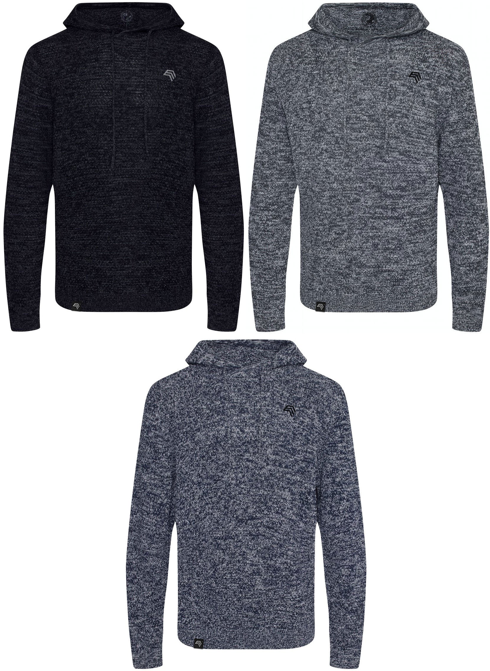 Weitere Farben erhältlich » Modell "ECL 0080" ― Unisex Fashion-fit Strickpullover mit Kapuze, 70% Baumwolle (regeneriert), 30% Polyester (recycelt), Zwei-Farben-Optik, angesetzte Ärmel, gerippter Bund und Kragen, Kapuze mit Kordelzug, Fangmuster, Fashion Fit: Maßtabelle bei den Produktbildern (bitte eigene Maße abgleichen).
