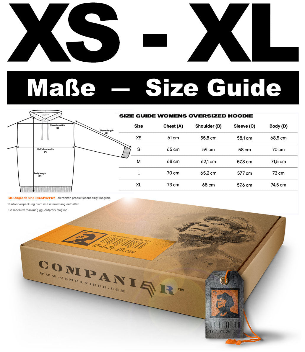 Schwerer Kapuzenpullover. Material / Grammatur: 370g/m². 83% Baumwolle (zertifizierte Bio-Baumwolle, gekämmt und ringgesponnen), 17% Polyester (recycelt). Besonderheiten: OHNE Kängurutasche und Oversize Schnitt (Größenangaben/Maßtabelle bei den Produktbildern, bitte vor dem Kauf eigene Maße abgleichen), 2-lagige Kapuze mit Kordelzug, Halbmond im Nacken, Nackenband, überschnittene Schultern, breite Rippstrickbündchen an Ärmel und Saum, Doppelnähte an Ärmel und Bündchen, nach vorne versetzte Schulternähte, Flatlock-Nähte, innen angeraut. 40° waschbar, nicht trocknergeeignet, nicht chemisch reinigen. // Pullover Pulli Sweatshirt Kaputzenpulli Kapuzenpulli Kapuzenshirt Kapuzenpullover Sweater