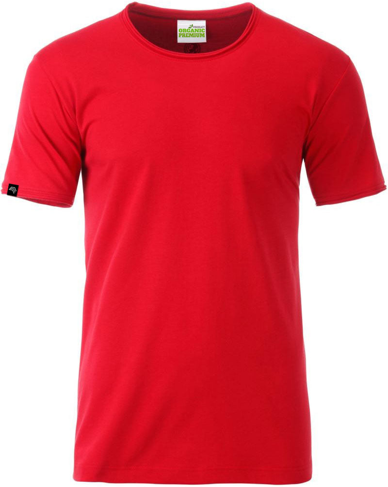 JAN 8002 ― Herren Bio-Baumwolle Rollsaum T-Shirt - Rot