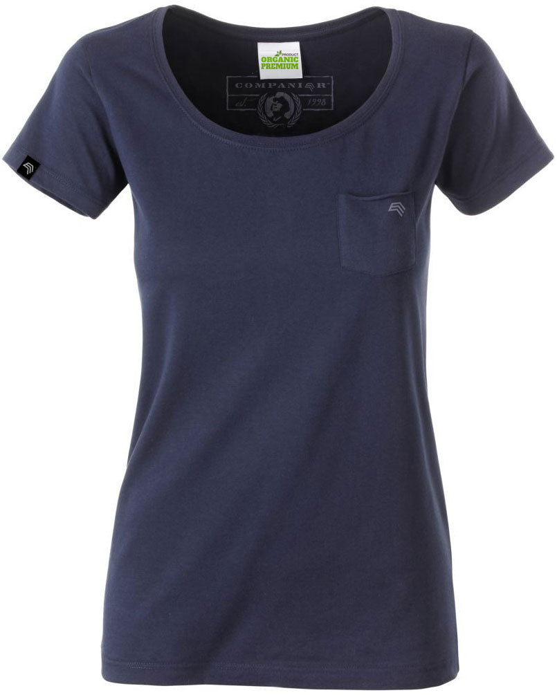 ― % ― JAN 8003 ― Damen Bio-Baumwolle T-Shirt mit Brusttasche - Navy Blau [XS]