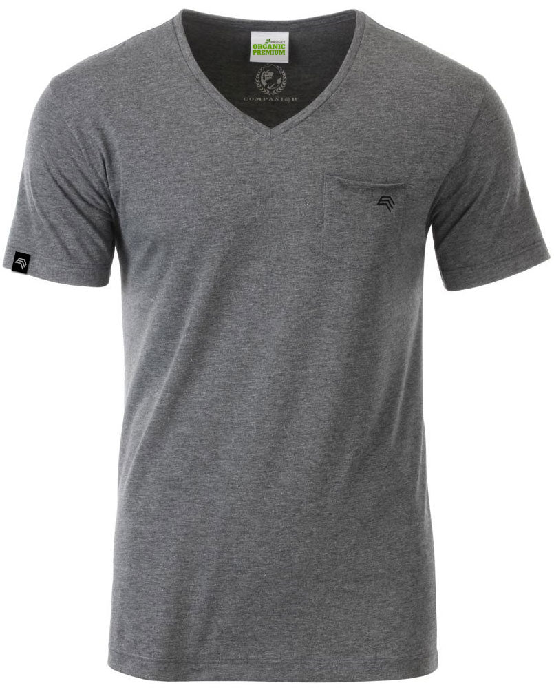 ― % ― JAN 8004 ― Herren Bio-Baumwolle V-Neck T-Shirt mit Brusttasche - Heather Melange Grau [XL]