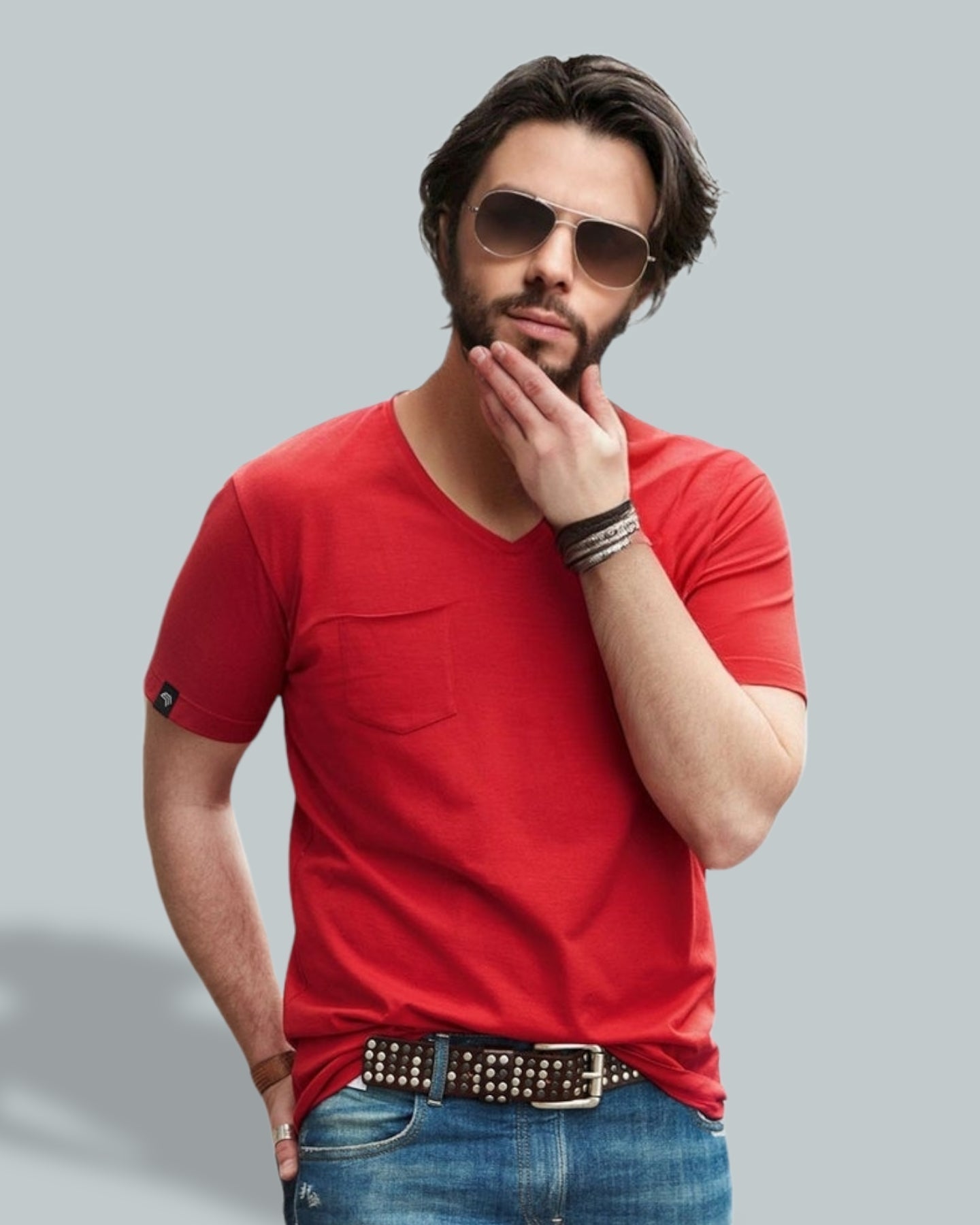 Weitere Farben erhältlich » Modell "JAN 8004" ― Herren/Unisex BioBaumwolle V-Ausschnitt Männer T-Shirt mit Rollsaum-Brusttasche. Material: 140g/m², 100% Baumwolle (Bio-Baumwolle). Single Jersey, wunderbare, weiche Qualität, geschmeidiger Griff, V-Ausschnitt mit schmalem Bündchen, Bündchen mit Elasthan, Brusttasche mit Rollsaum, klassischer regular fit-Schnitt (Größentabelle bei den Bildern, bitte eigene Maße abgleichen).