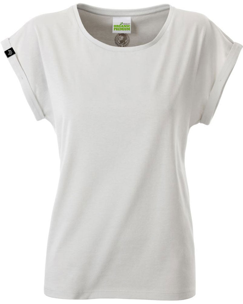 More colors available » Model "JAN 8005" ― Ladies' Casual T-Shirt Organic. Material: 120g/m², 100% cotton (organic), casual loos fit (size table at pictures, please check your measurements), low cut round neckline, cuffs with elastane, cuffs with elastane, overcut shoulder, short roll-up sleeves. // JAN8005 Companier Tshirts