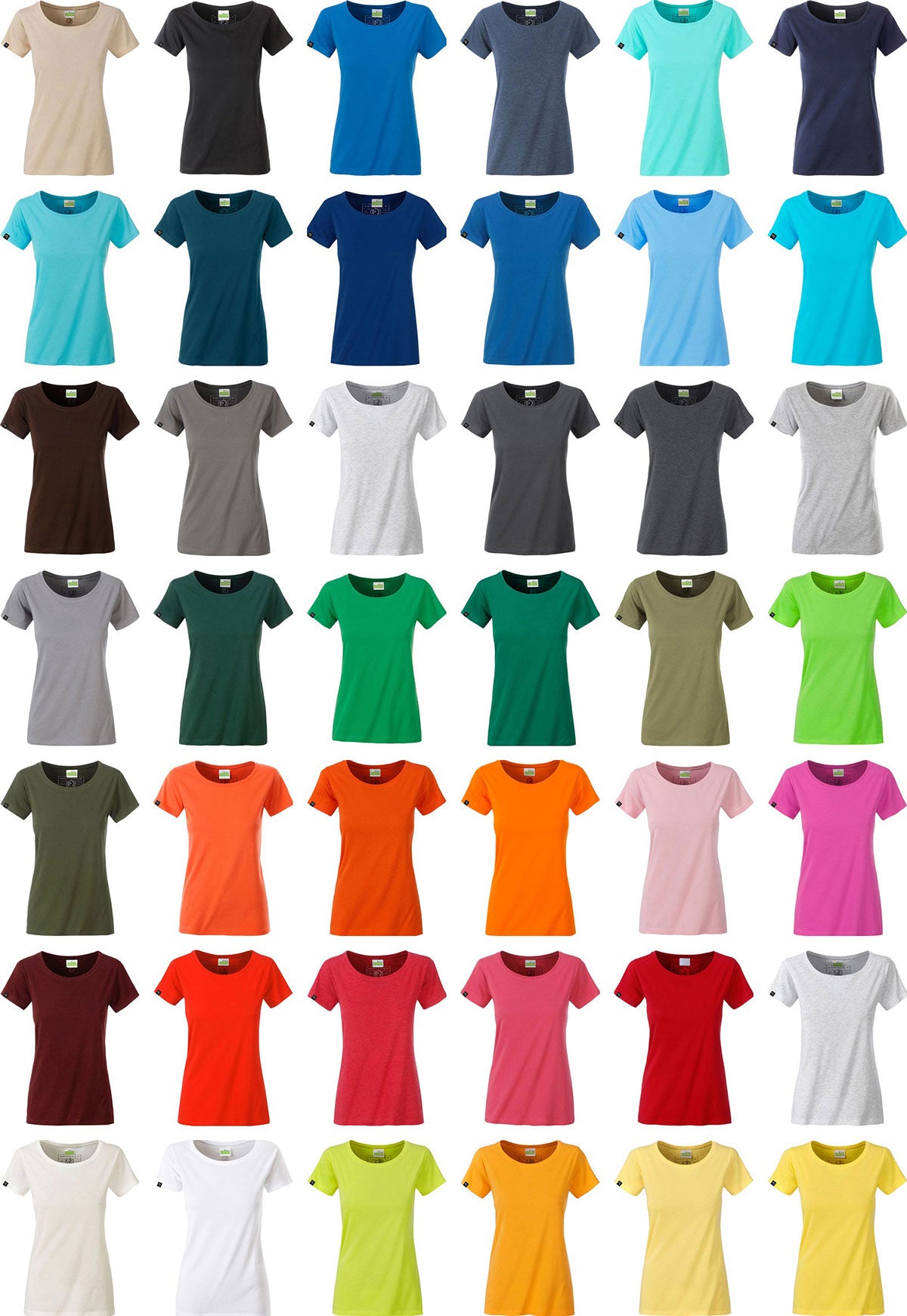 45 weitere Farben erhältlich » Modell "JAN 8007" ― Leichtes Damen-Biobaumwolle Basic T-Shirt. Material/Grammatur: 120 g/m², 100% Baumwolle (Bio-Baumwolle), leichtes Single Jersey, leicht taillierter Schnitt (Größentabelle bei den Bildern, bitte eigene Maße abgleichen), großzügiger Rundhalsausschnitt, Bündchen mit Elasthan, wunderbare, weiche Qualität, geschmeidiger Griff.