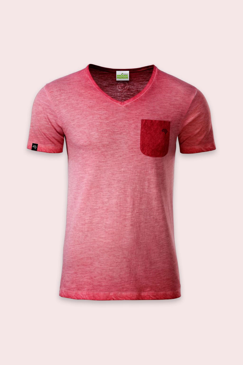 ― % ― JAN 8016/ ― Herren Bio-Baumwolle V-Neck Flammgarn T-Shirt - Chili Rot [M]