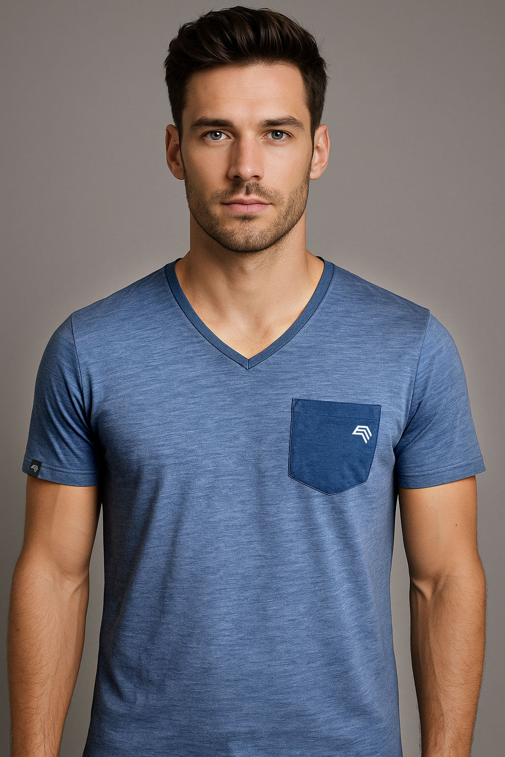 Auslaufartikel ― JAN 8016 ― Herren Bio-Baumwolle V-Neck Flammgarn T-Shirt - Denim Blau