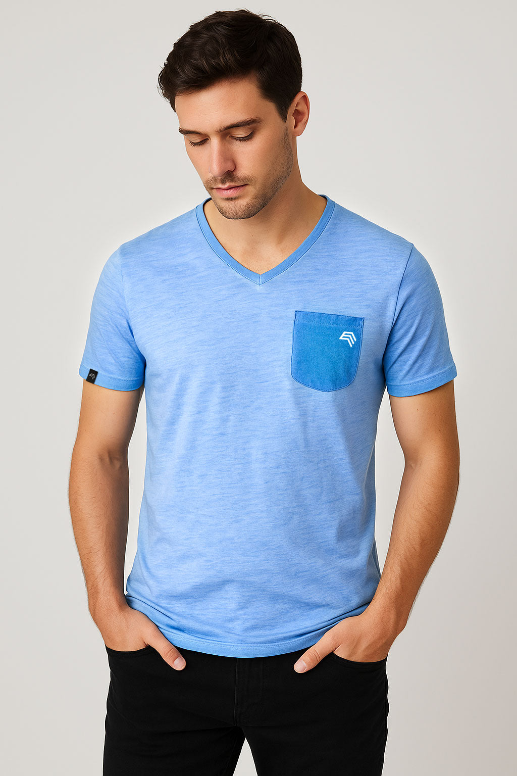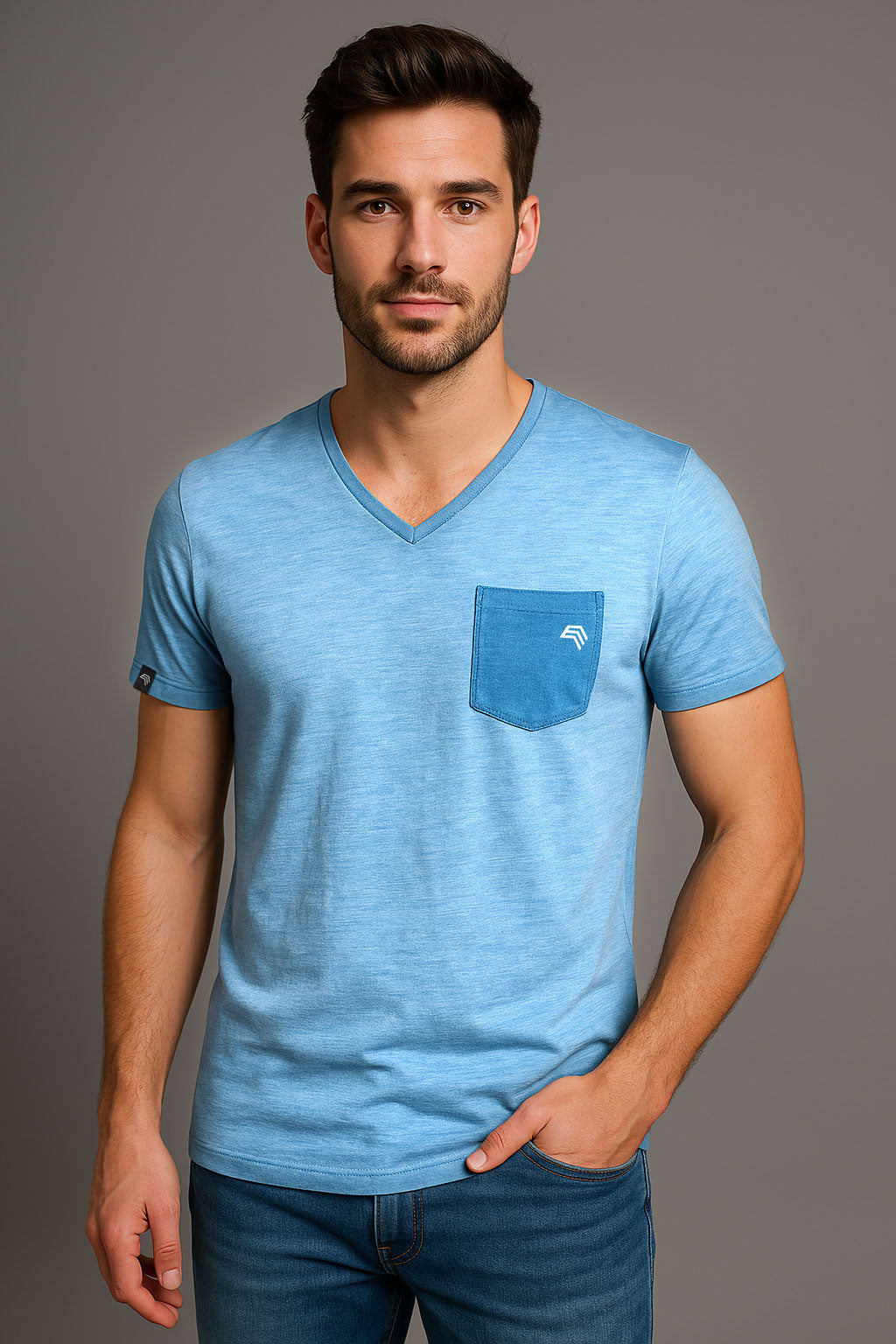 Auslaufartikel ― JAN 8016 ― Herren Bio-Baumwolle V-Neck Flammgarn T-Shirt - Horizon Blau