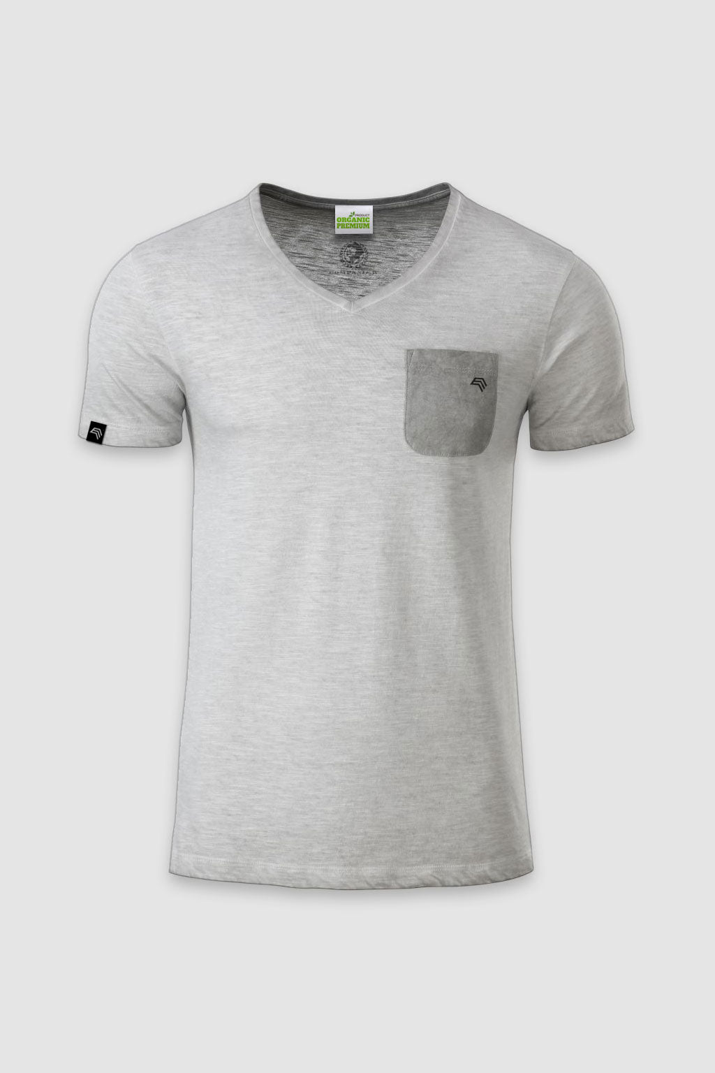 ― % ― JAN 8016/ ― Herren Bio-Baumwolle V-Neck Flammgarn T-Shirt - Light Grau [M]