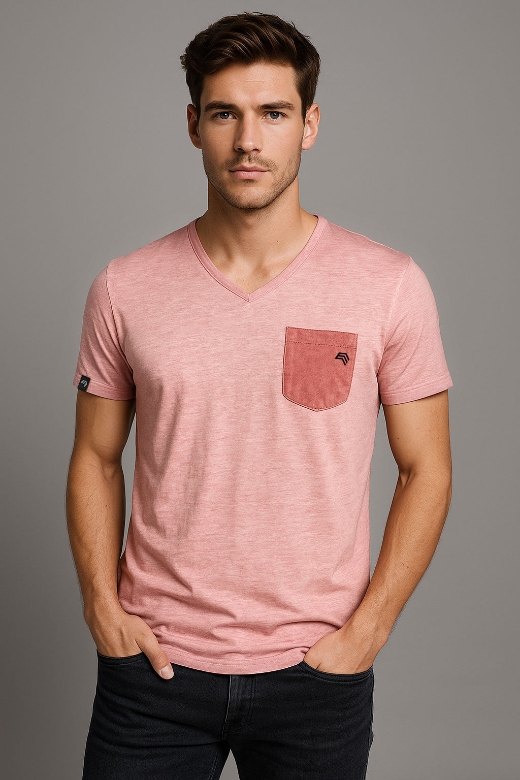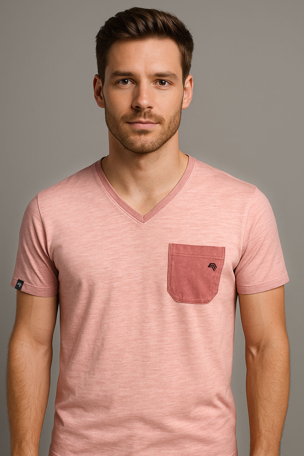 Auslaufartikel ― JAN 8016 ― Herren Bio-Baumwolle V-Neck Flammgarn T-Shirt - Soft Pink