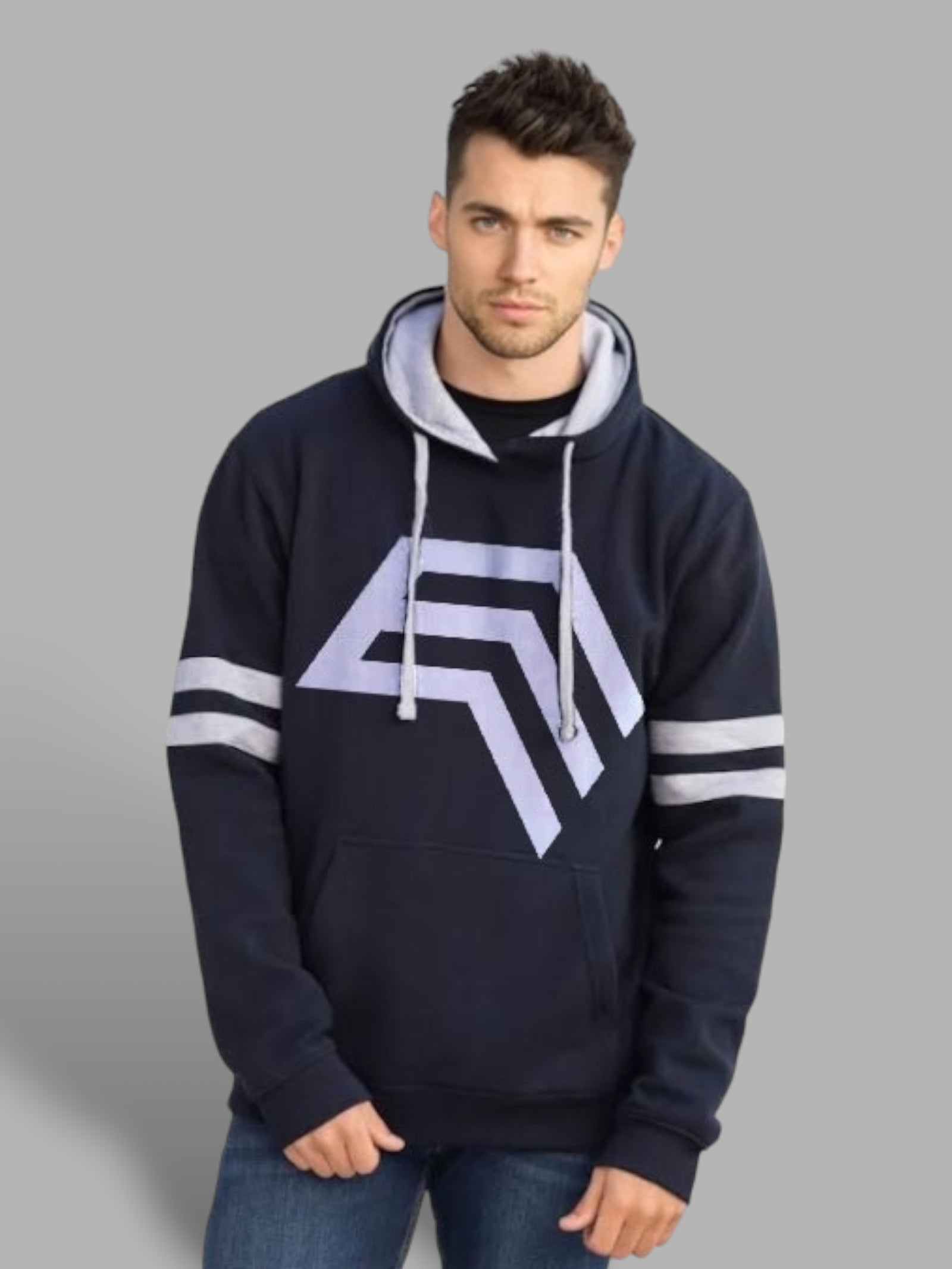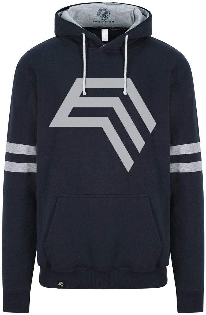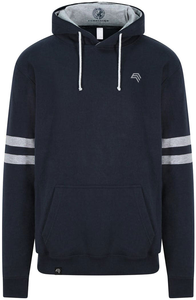 ― % ― JDS 0103/ ― Stripy Sleeve Hoodie Sweatshirt - Navy Blau / Hell Grau [L / 2XL]