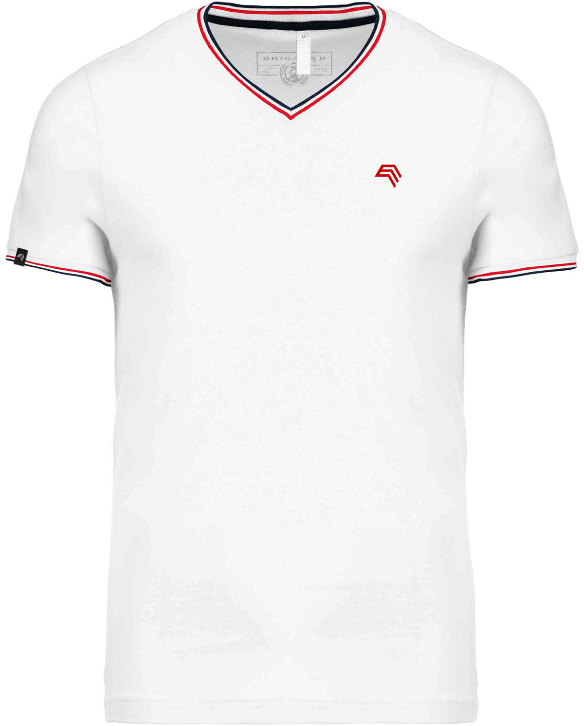 ― % ― KRB K374 ― Bi-color Piqué-Trikot V-Neck T-Shirt - Weiß / Blau / Rot [XL]