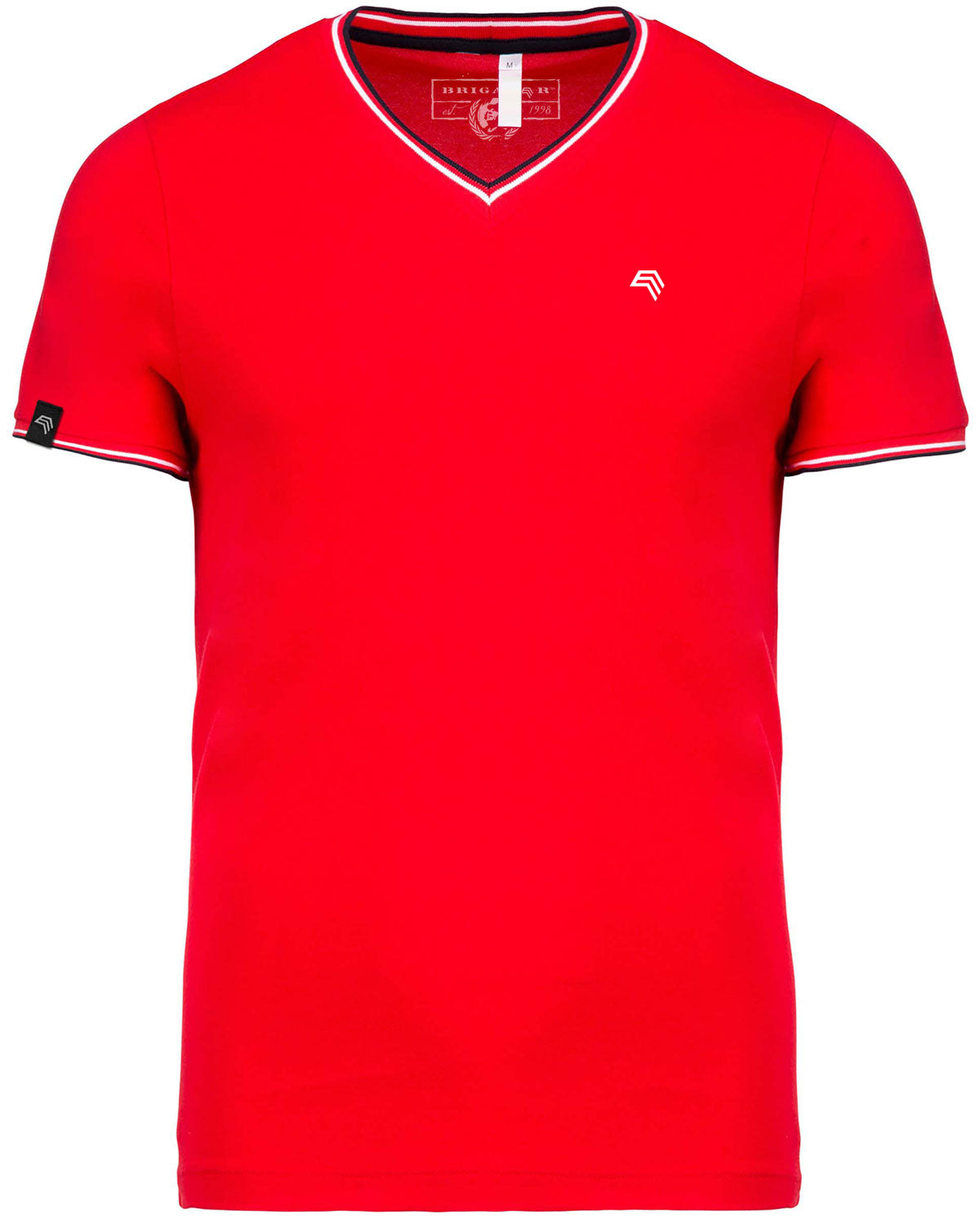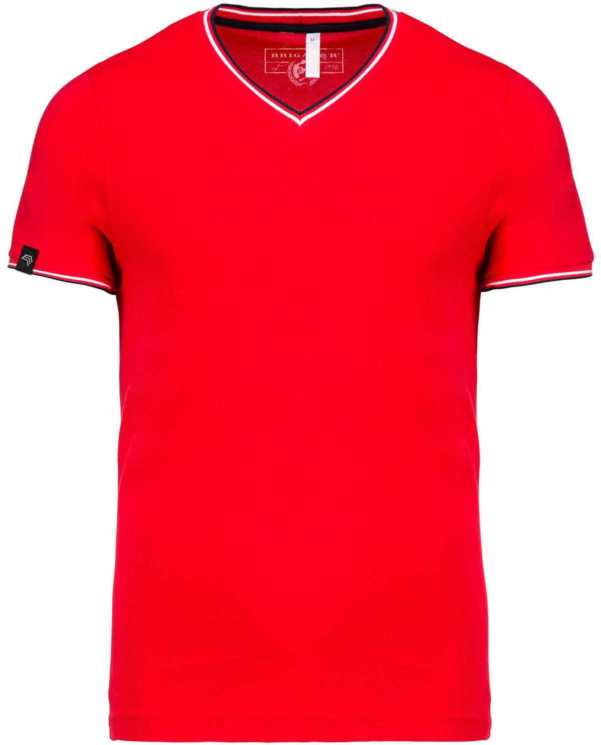6 more colors available » Model "KRB K374" ― Men's Piqué V-Neck TShirt with multicolored contrast stripes. Material: 170g/m², 100% cotton (combed cotton piqué), rib finishing with contrasting stripes at neck and cuffs, contrasting taped neck and side slits, twin needle finishing at hem. Size chart at pictures: Please compare your measurements before purchasing! // V-Kragen V-Ausschnitt collar KRB374