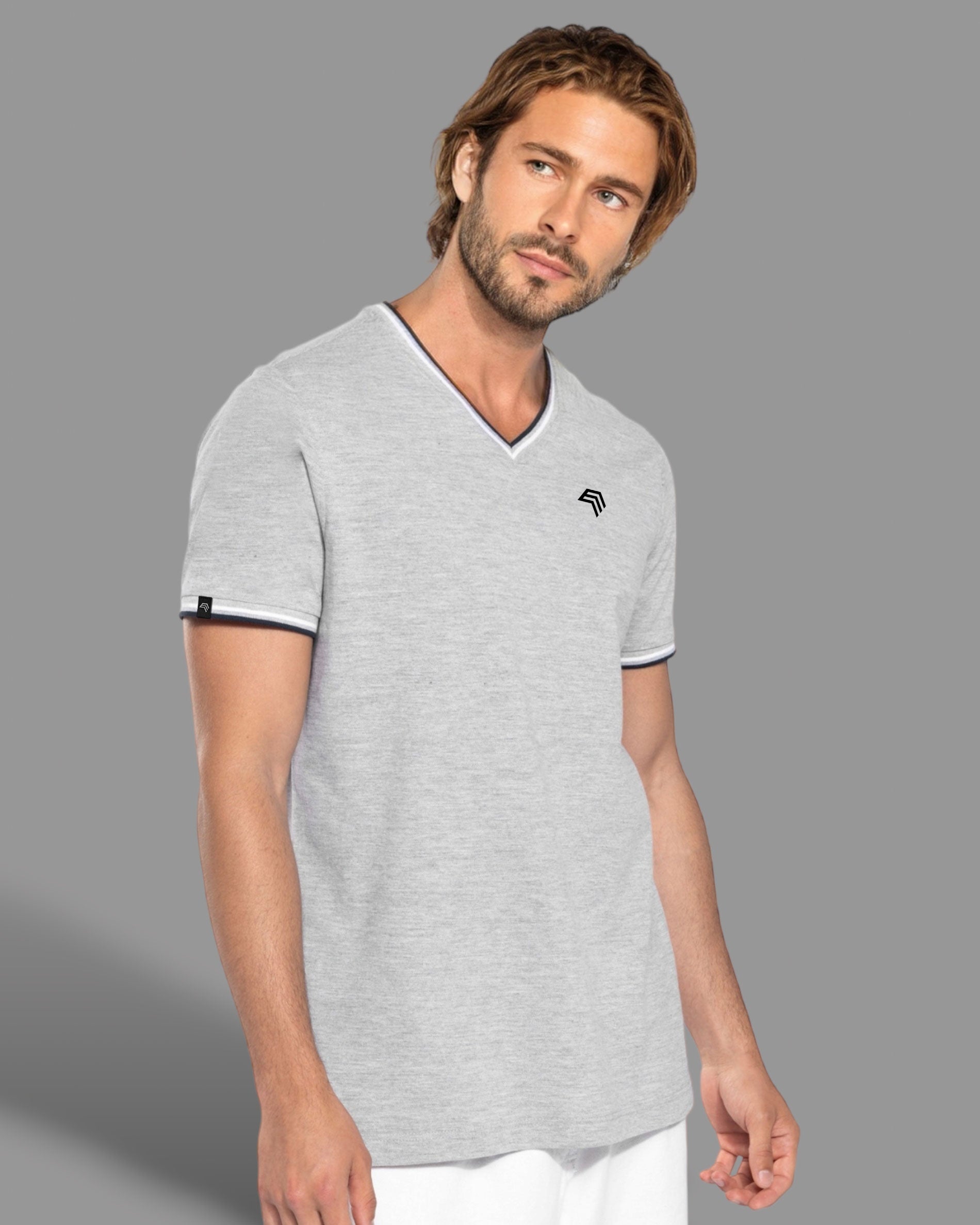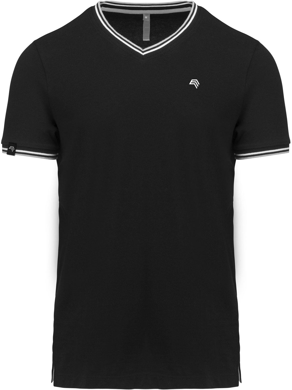KRB K374 ― Bi-color Piqué-Trikot V-Neck T-Shirt - Schwarz / Grau / Weiß