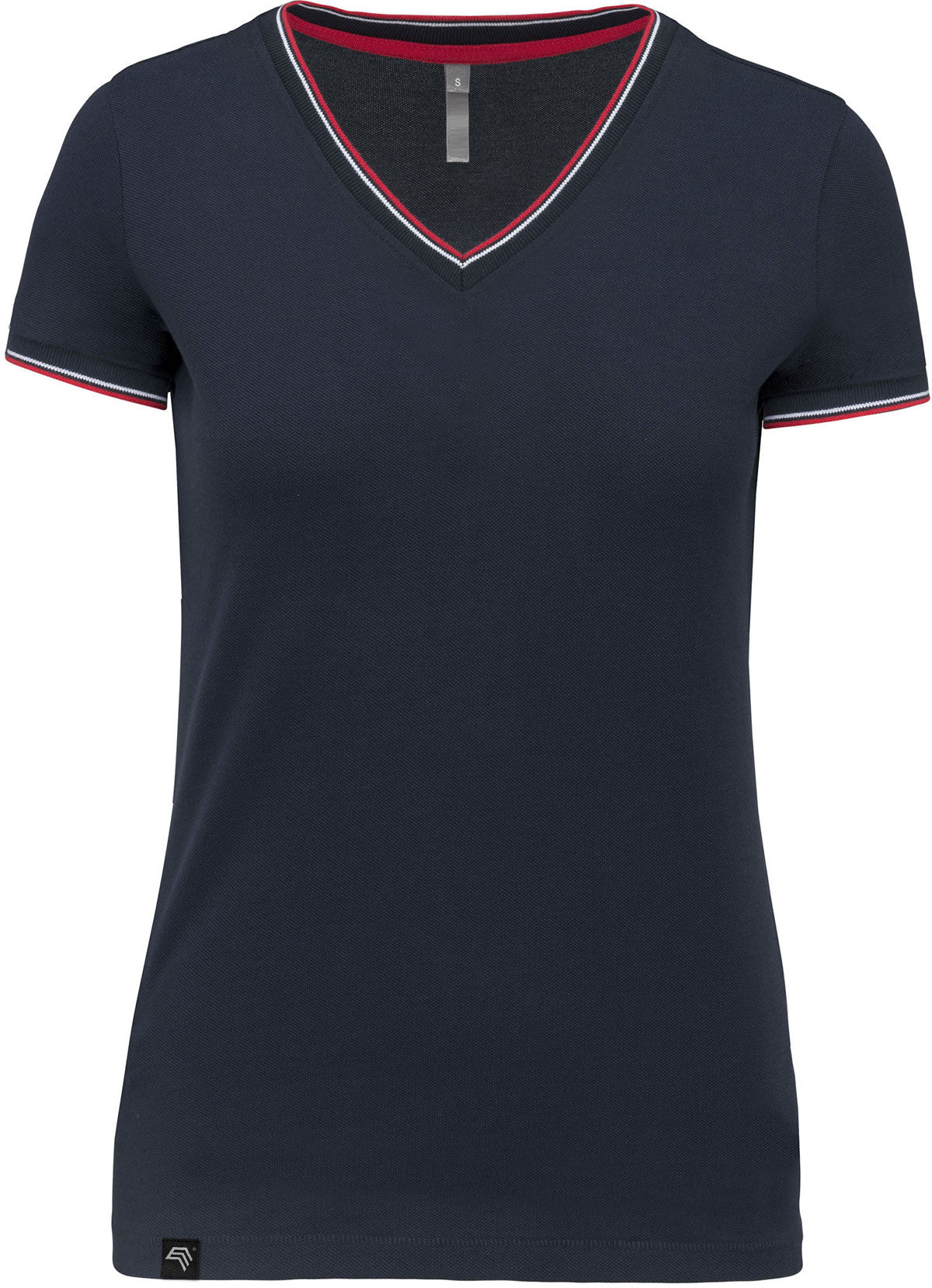 KRB K394 ― Damen Piqué-Trikot V-Neck T-Shirt - Navy Blau / Rot / Weiß