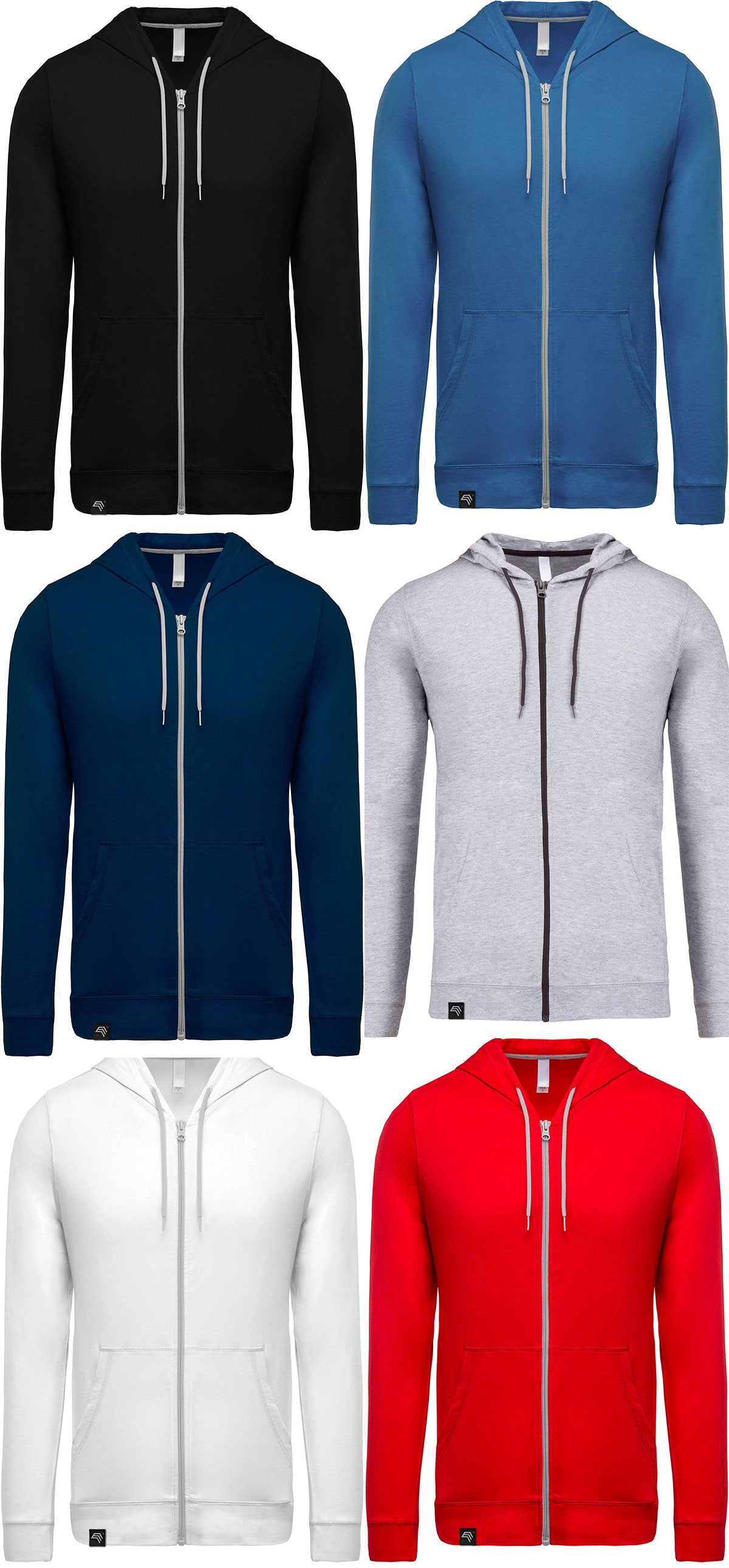 5 more colors available » Model "KRB K438" ― Leightweight Unisex/Men's Lightweight Hooded Sweat Jacket. Leight Material: 180 g/m², 100% enzyme-washed combed cotton. Soft-touch fabric. Casual modern style. Contrasting neck tape. 2 kangaroo pockets. Self fabric cuffs and hem. Contrasting zip and two-tone drawstring hood. Size chart at pictures: Please compare your measurements before purchasing! // Hooded Sweatshirt Hoodies Jumper men's KRBK438