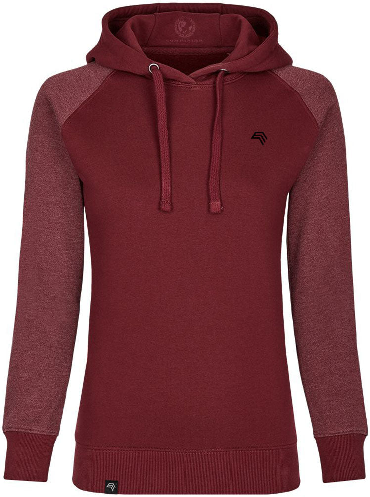 MMT 0621 ― Damen Bi-Color No Pocket Hoodie - Burgund Rot / Melange