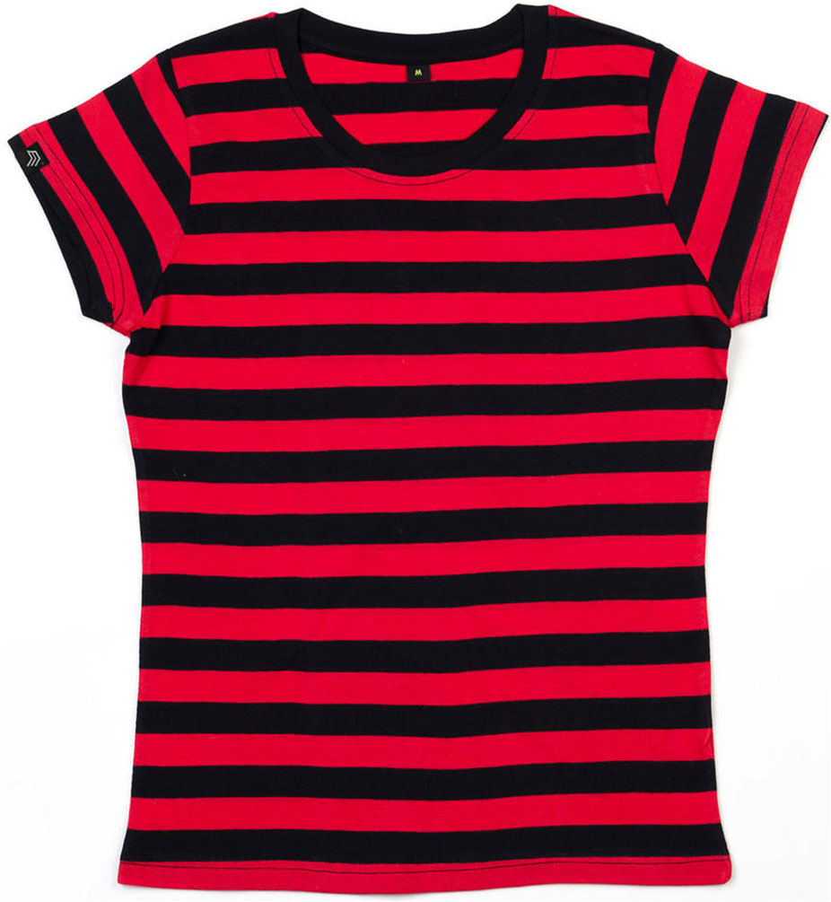 MTS M110 ― Weiches Damen Stripy Bio-Baumwolle T-Shirt - Schwarz / Rot