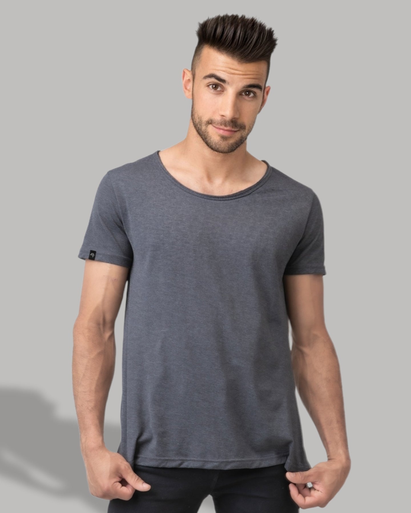 ― % ― MTS M120/ ― Herren Bio-Baumwolle Raw Scoop T-Shirt - Schwarz [L]
