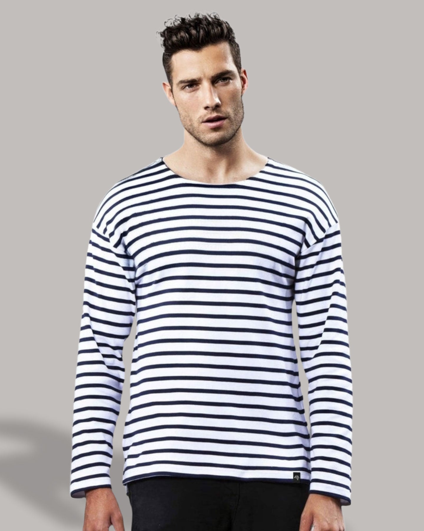 MTS M136 ― Weiches Unisex Bio-Baumwolle Longsleeve Sweatshirt gestreift - Navy Blau / Weiß