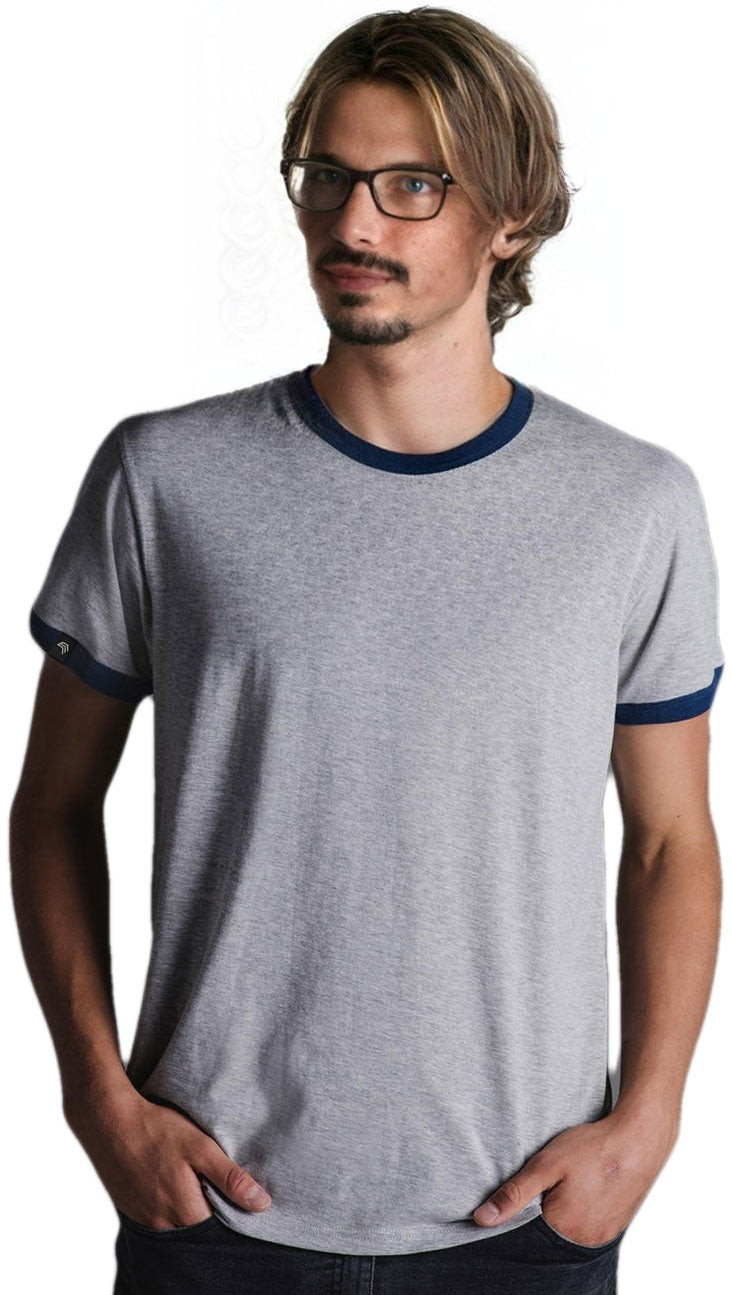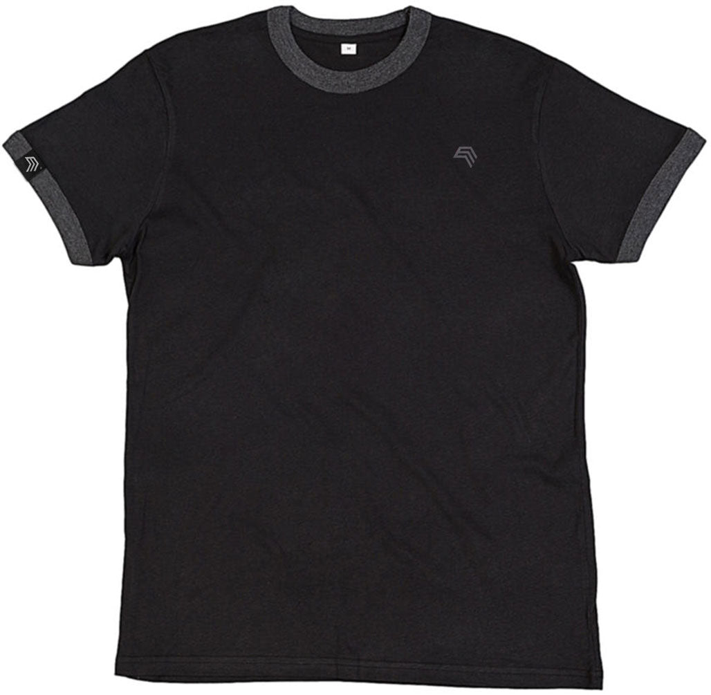 ― % ― MTS M175/ ― Peach Finish Retro Ringer Bio-Baumwolle T-Shirt - Schwarz / Grau [L / XL}