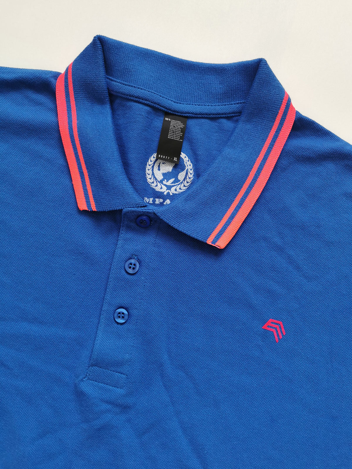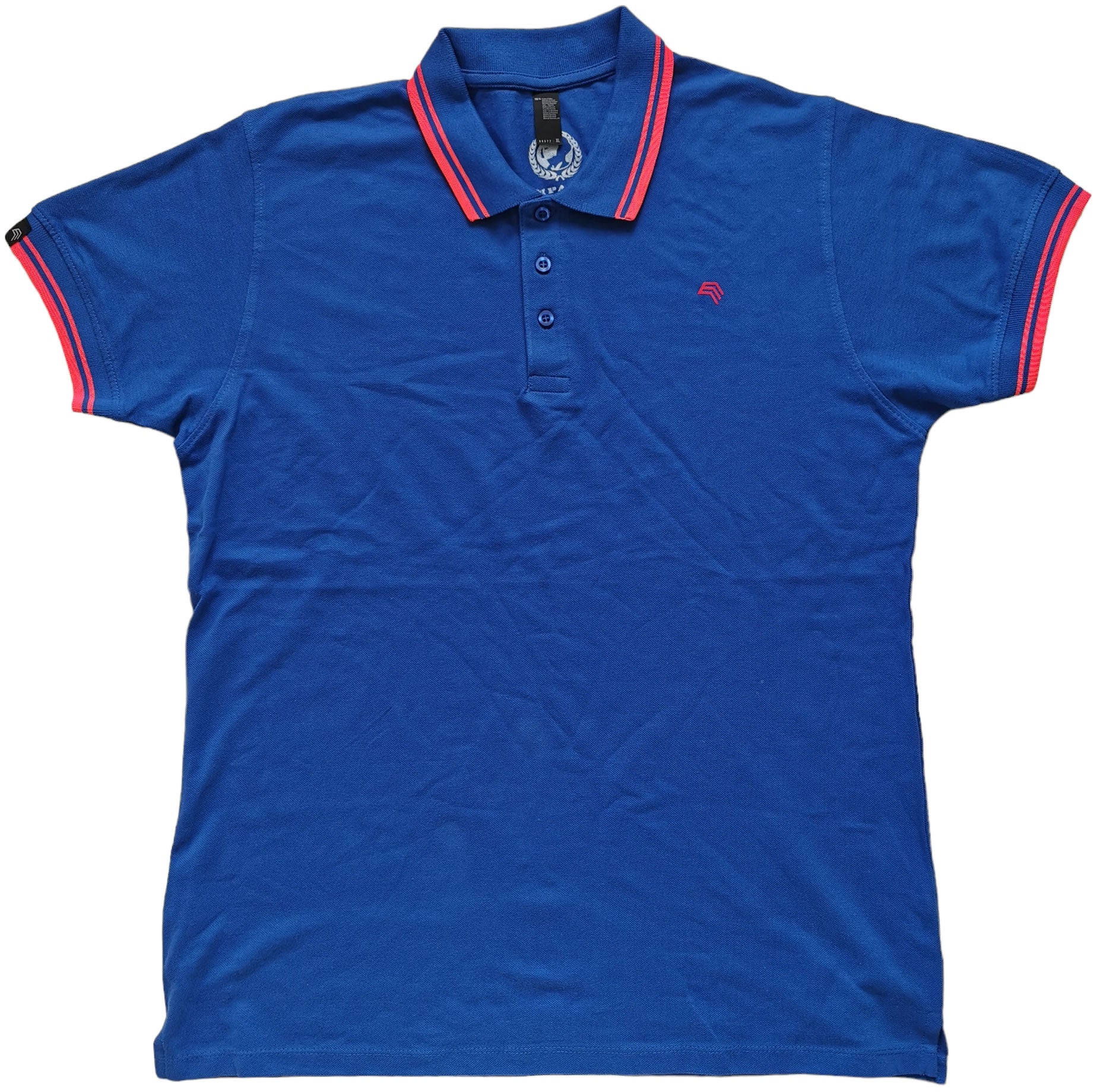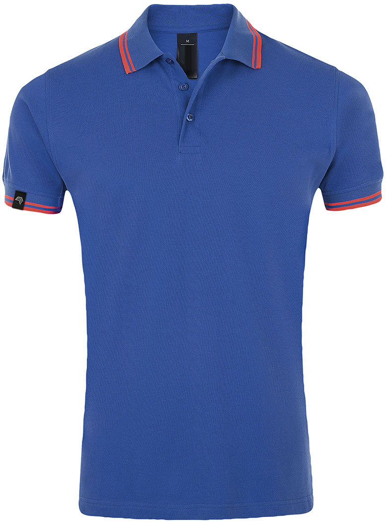 SLS 0577 ― Kontraststreifen Polo Shirt - Royal Blau / Coral Rot Orange