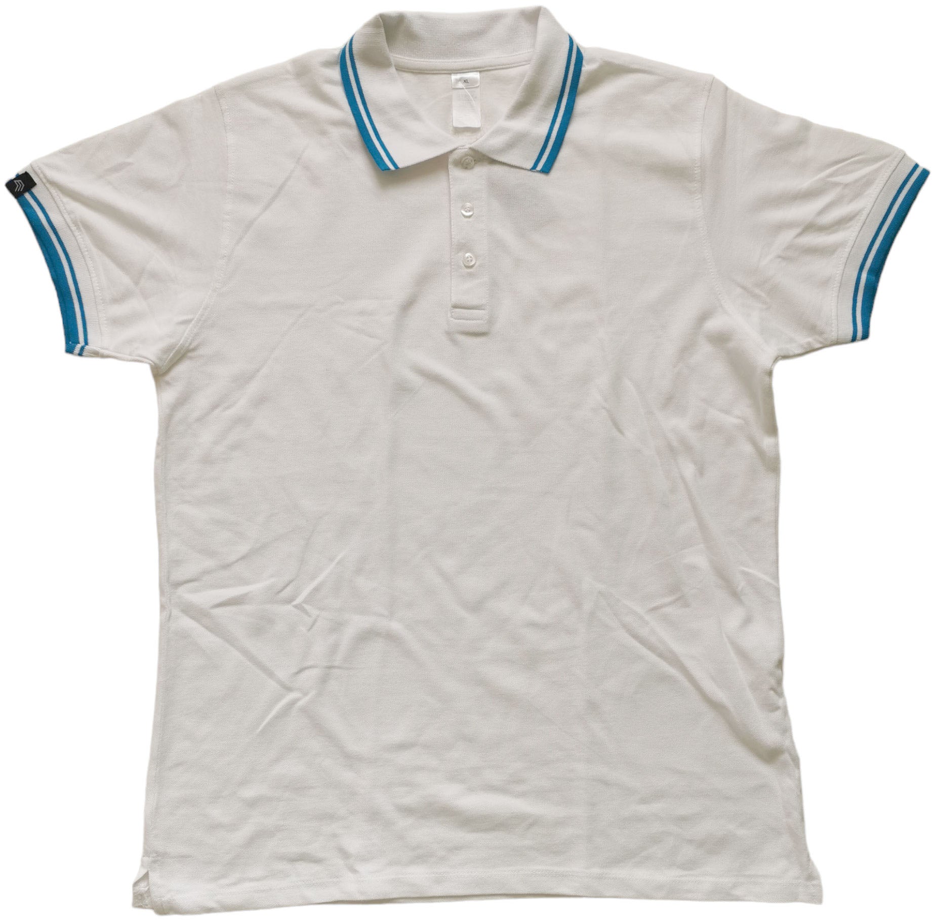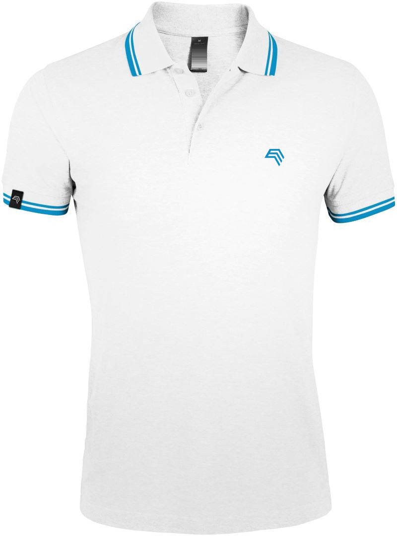 SLS 0577 ― Kontraststreifen Polo Shirt - Weiß / Aqua Blau