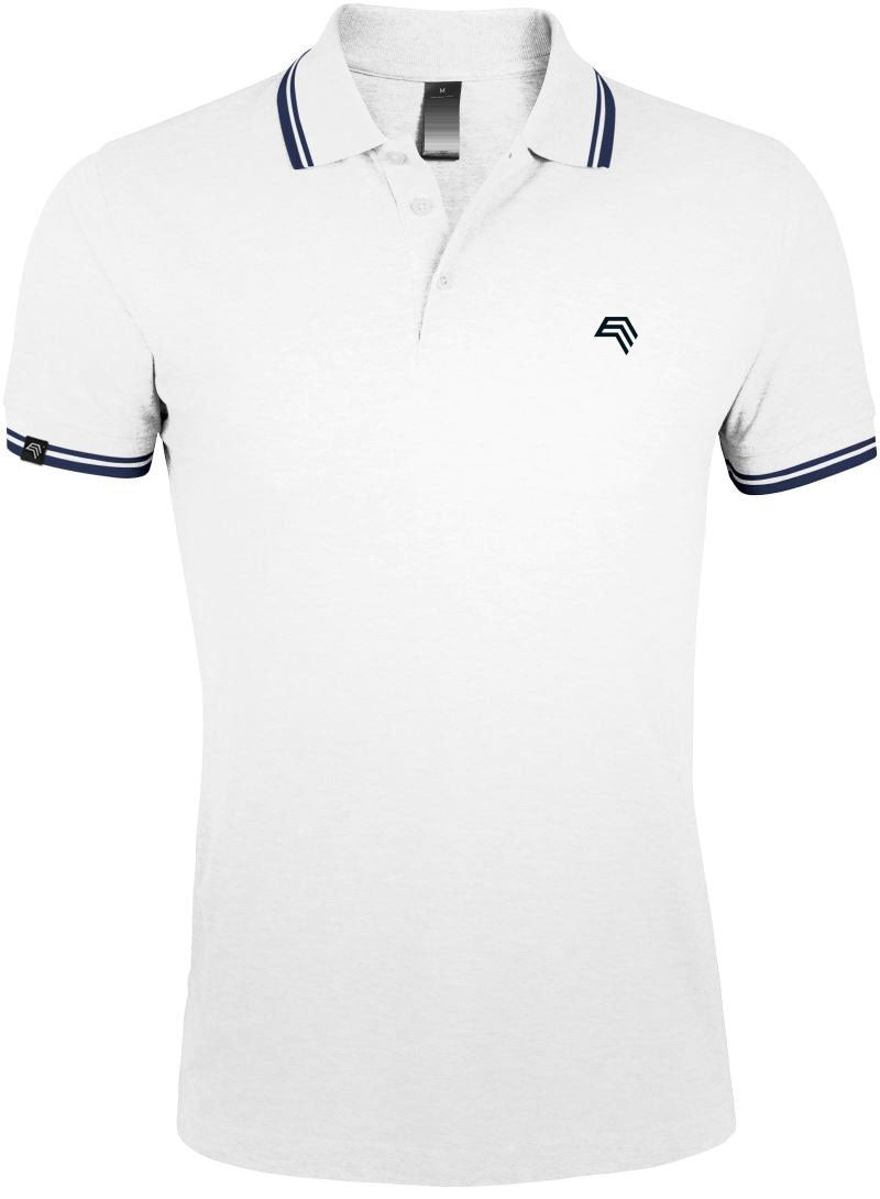 ― % ― SLS 0577 ― Kontraststreifen Polo Shirt - Weiß / Navy Blau [L]