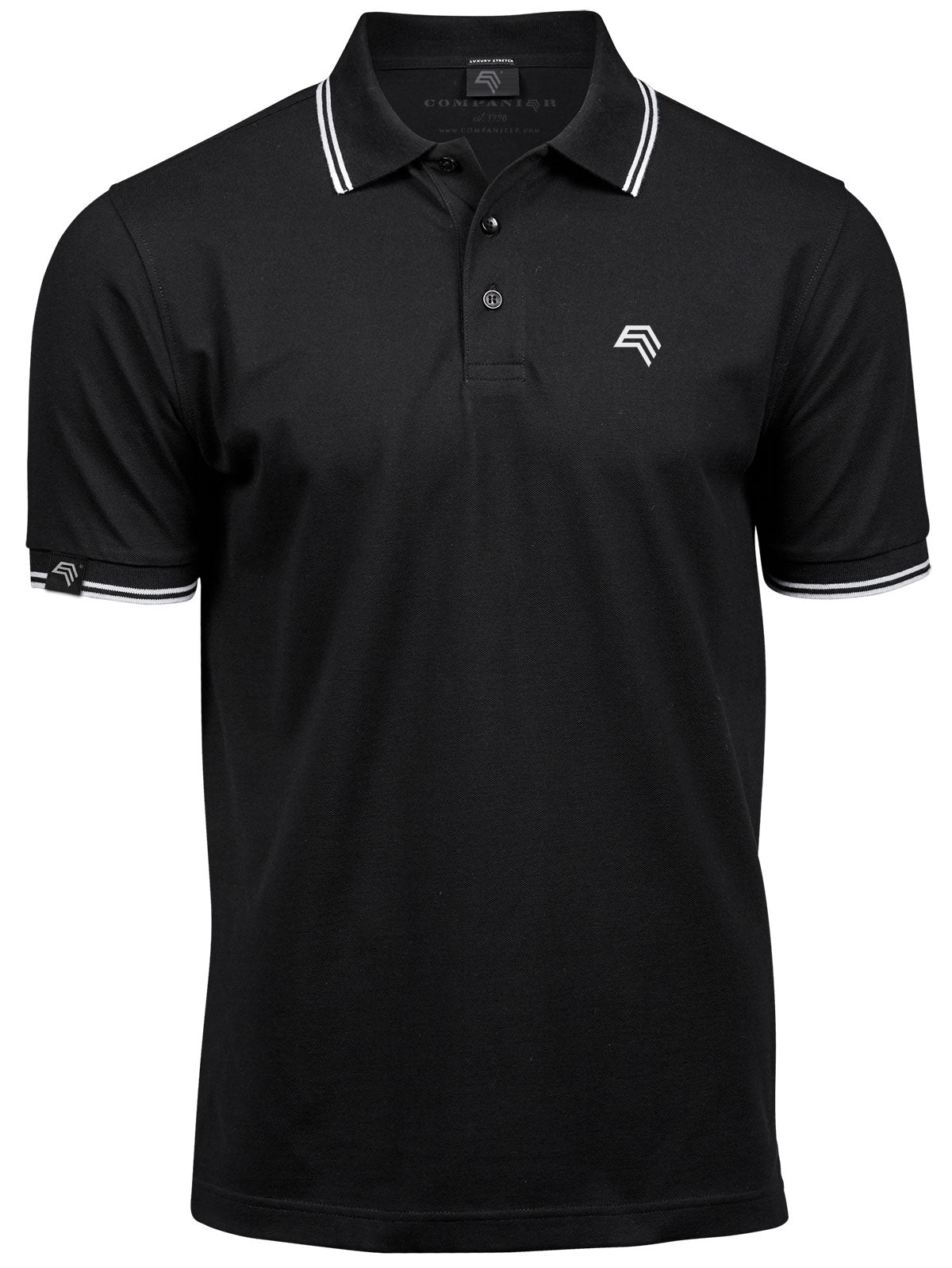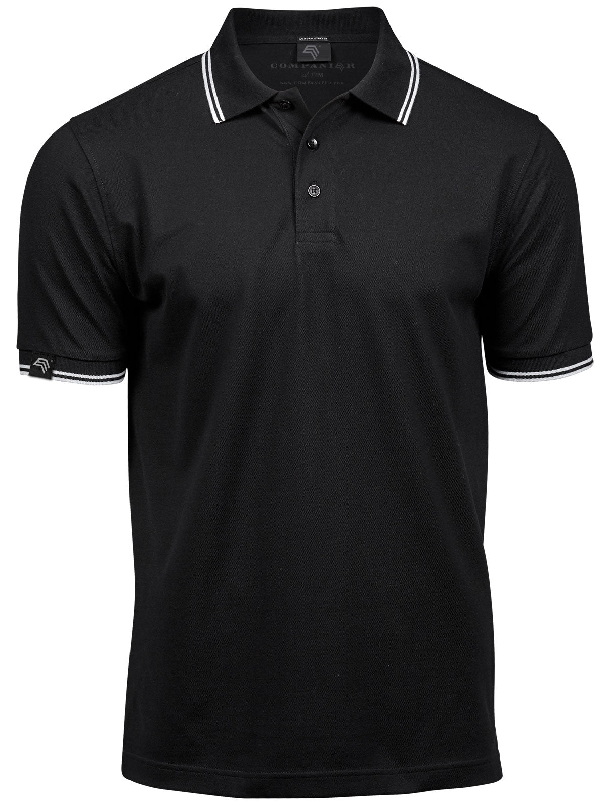 TJS 1407 ― Luxury Stripe Stretch Bio-Baumwolle Polo Shirt - Schwarz / Weiß