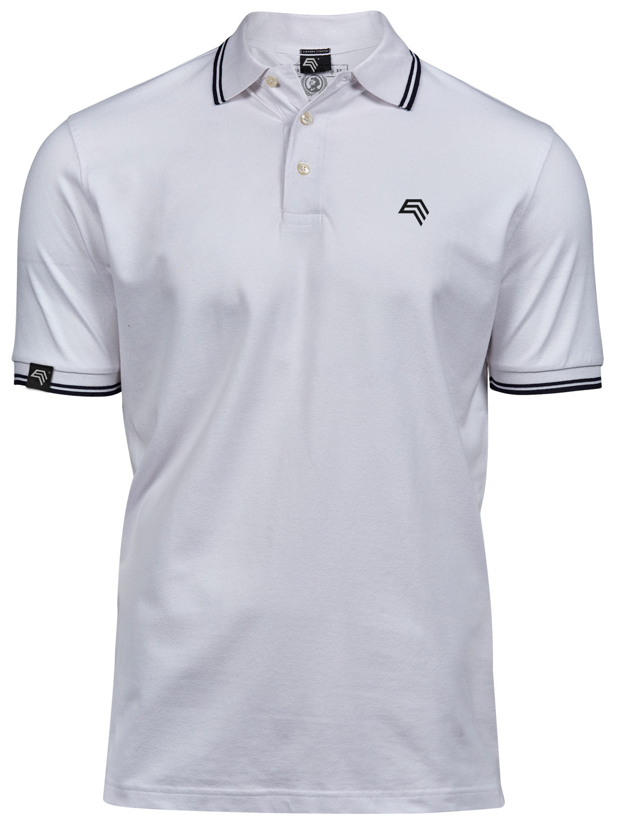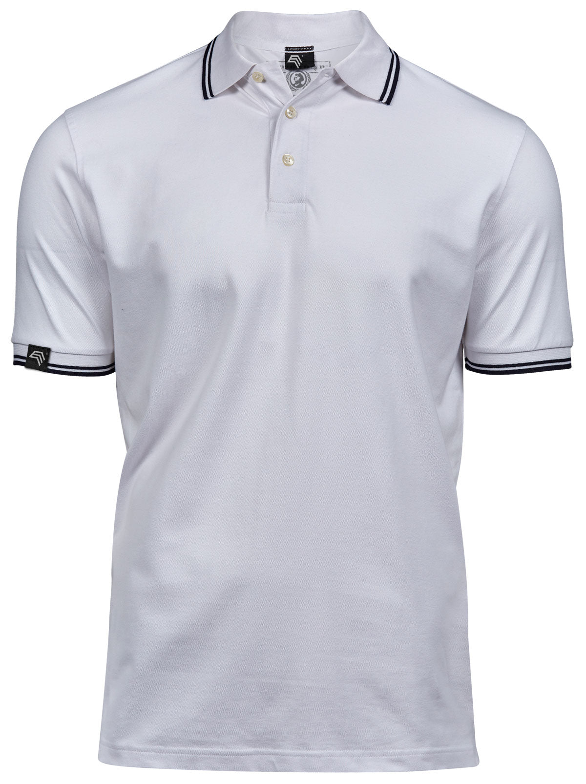 TJS 1407 ― Luxury Stripe Stretch Bio-Baumwolle Polo Shirt - Weiß / Navy Blau